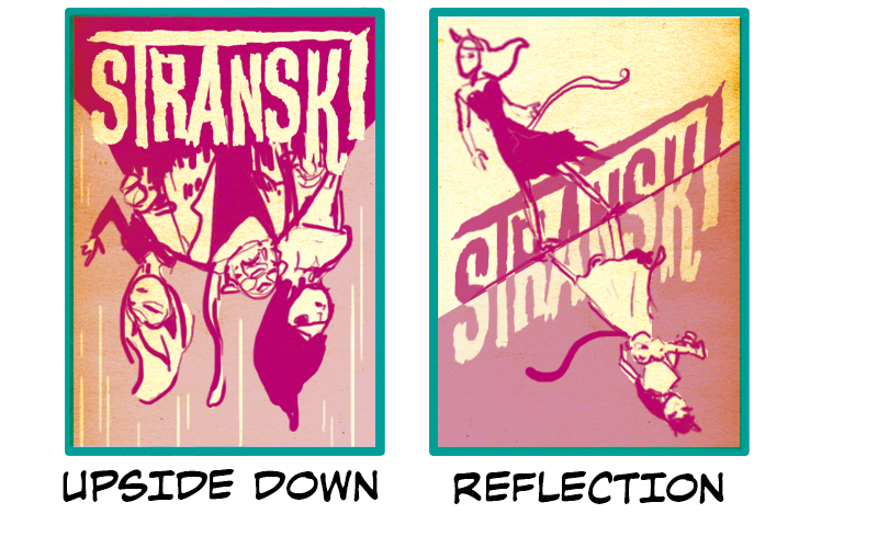 Upside down & Reflection are covers that are good for calling attention to the duality of two characters in your series. Reflection is the most direct representation of this. The composition is set up in a way the characters are mirror reflections of each other. The logo also follows this centerline, and the coloring is flipped with the background to cement the mirror analogy further. Upside Down is a dynamic composition that suggests action and perhaps two characters either fighting one another or working together to face a common enemy.