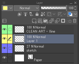 Important: Drag and drop this layer between the previous two (the sketch and the clean line art) so that your clean lines art layer is on top of the flats we are about to create.