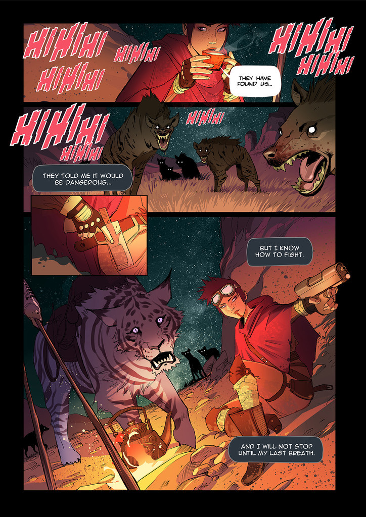 Yang terutama, saya menyukai kuas-kuas dalam Clip Studio Paint. Kuas-kuas itu begitu natural untuk disesuaikan, dan ketika digabungkan dengan tekstur, Anda memperoleh hasil yang sangat realistis. Kemampuan untuk menggunakan fitur tertentu ini dalam komik menjadi keuntungan besar bagi saya. Semua pekerjaan saya dikerjakan seluruhnya di Clip Studio Paint. Satu-satunya pengecualian adalah dalam hal pencetakan dan saya membutuhkan hasil yang akurat untuk warna CMYK.
