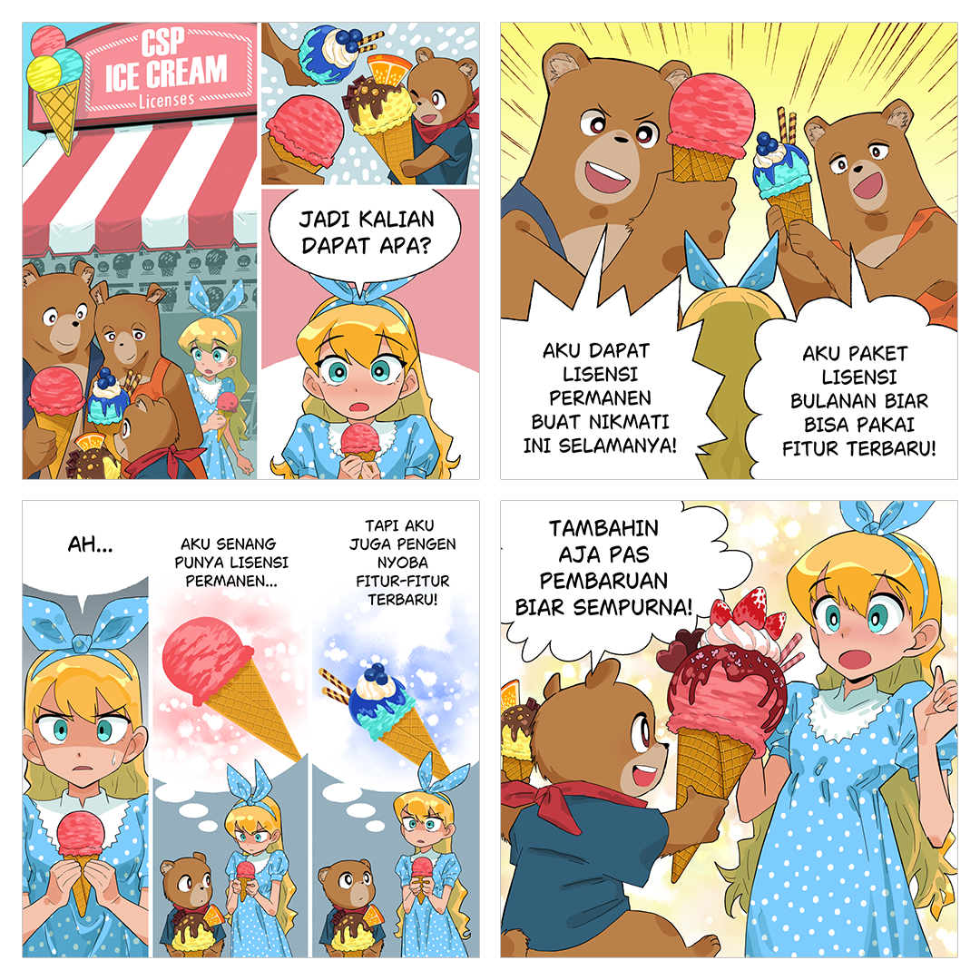 A. Tidak, hanya pengguna yang memiliki lisensi permanen pembelian satu kali (Windows / macOS) yang bisa mendapatkan Pas Pembaruan.