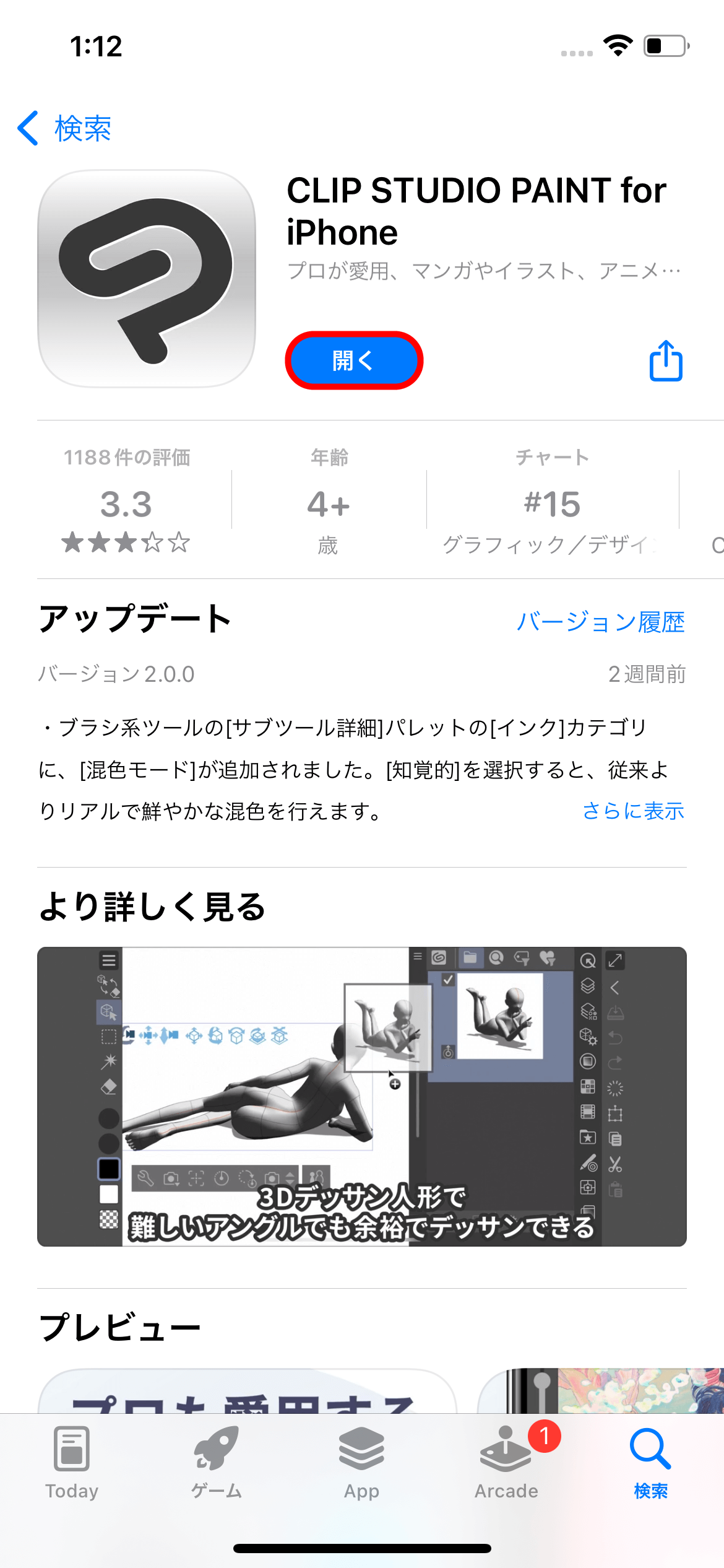 (1) App Storeの「開く」を押すかアイコンからアプリを起動する