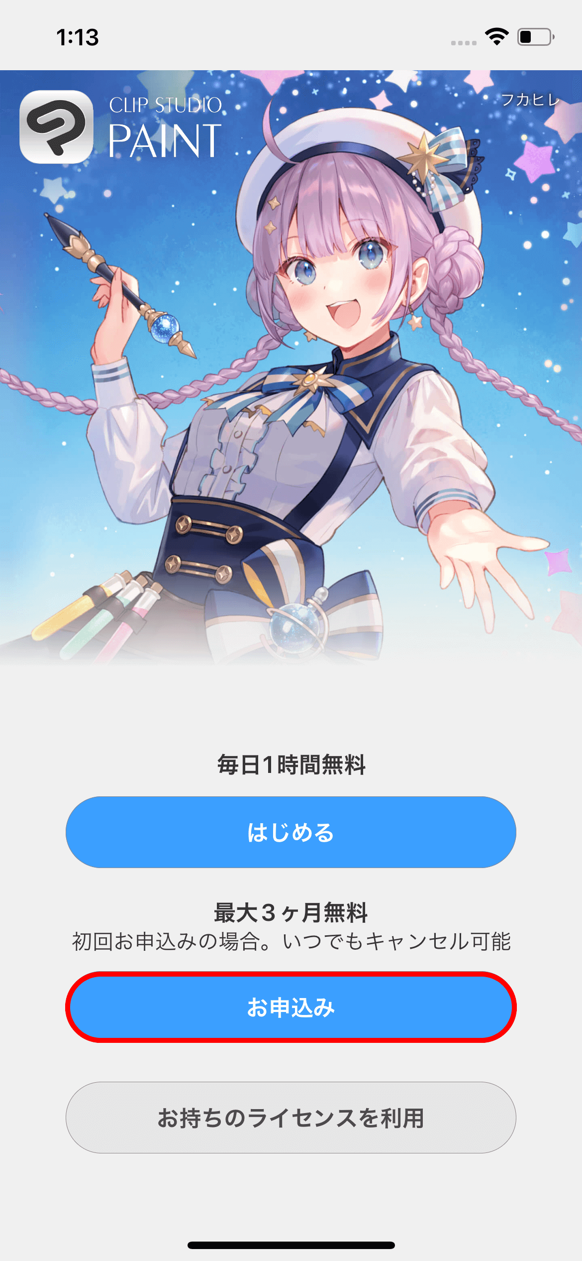 3. アプリストアでの契約が完了したら、ご利用のパソコンでCLIP STUDIO PAINTを起動してください。CLIP STUDIO PAINTがまだインストールされていない場合には、以下のボタンよりダウンロード、インストールして起動してください。