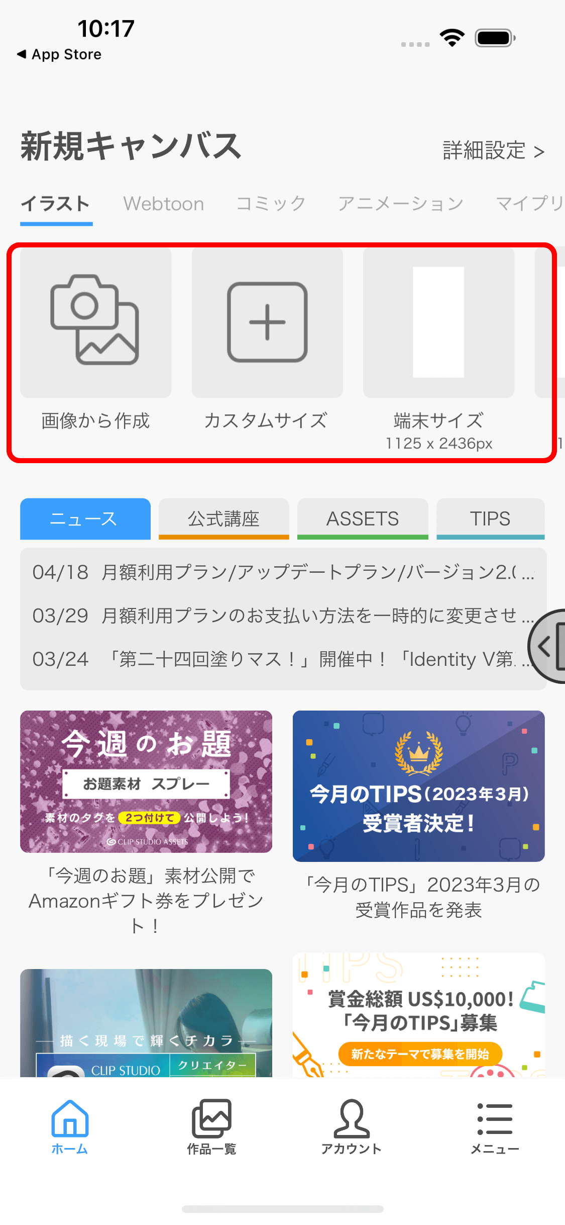 (2) 新規キャンバスから何らかのキャンバスを開きます
