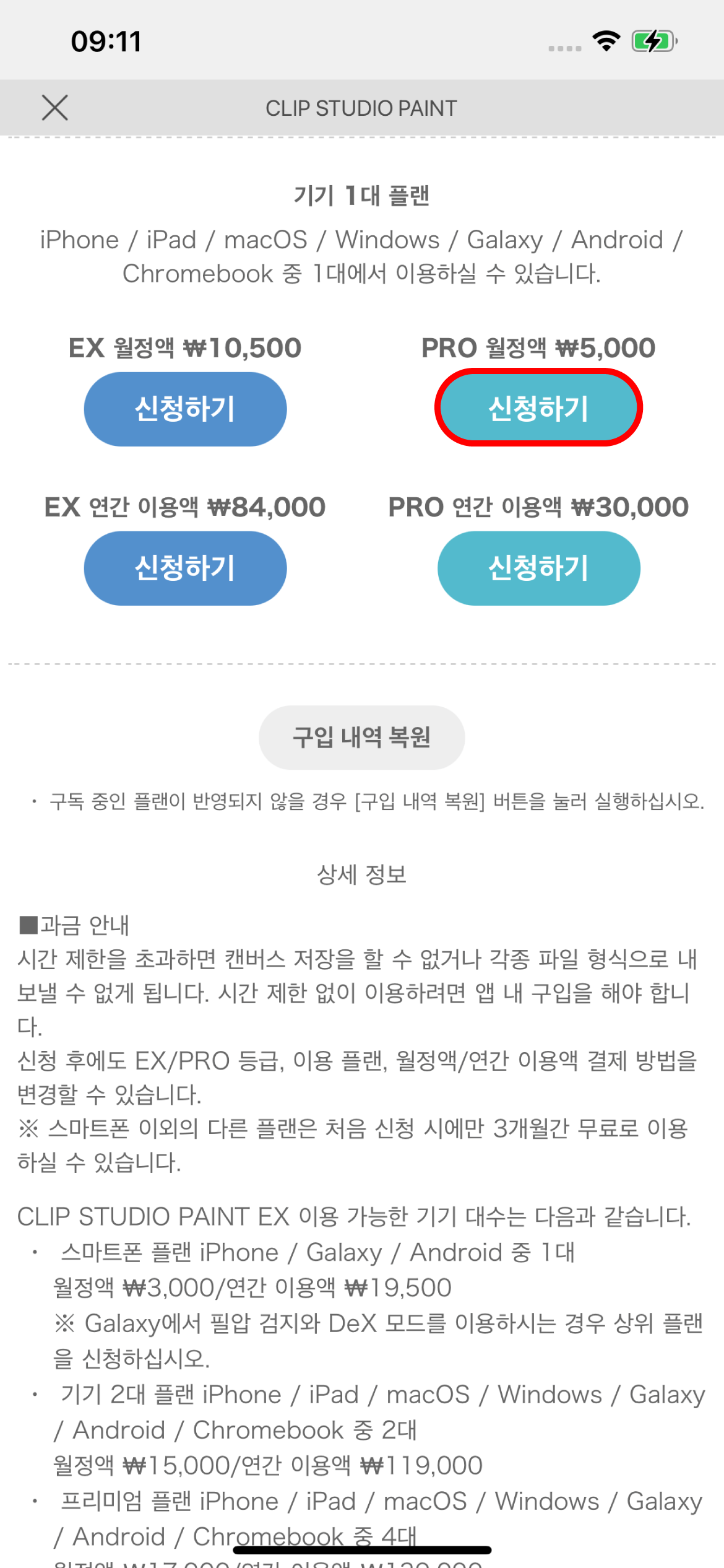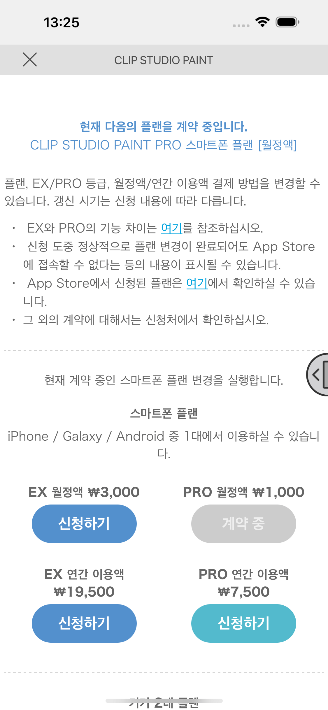 1. PC에서 사용하는 경우에도 스마트폰 또는 태블릿 등으로 App Store 또는 Google Play Store에서 사용 플랜을 신청하실 수 있습니다.
