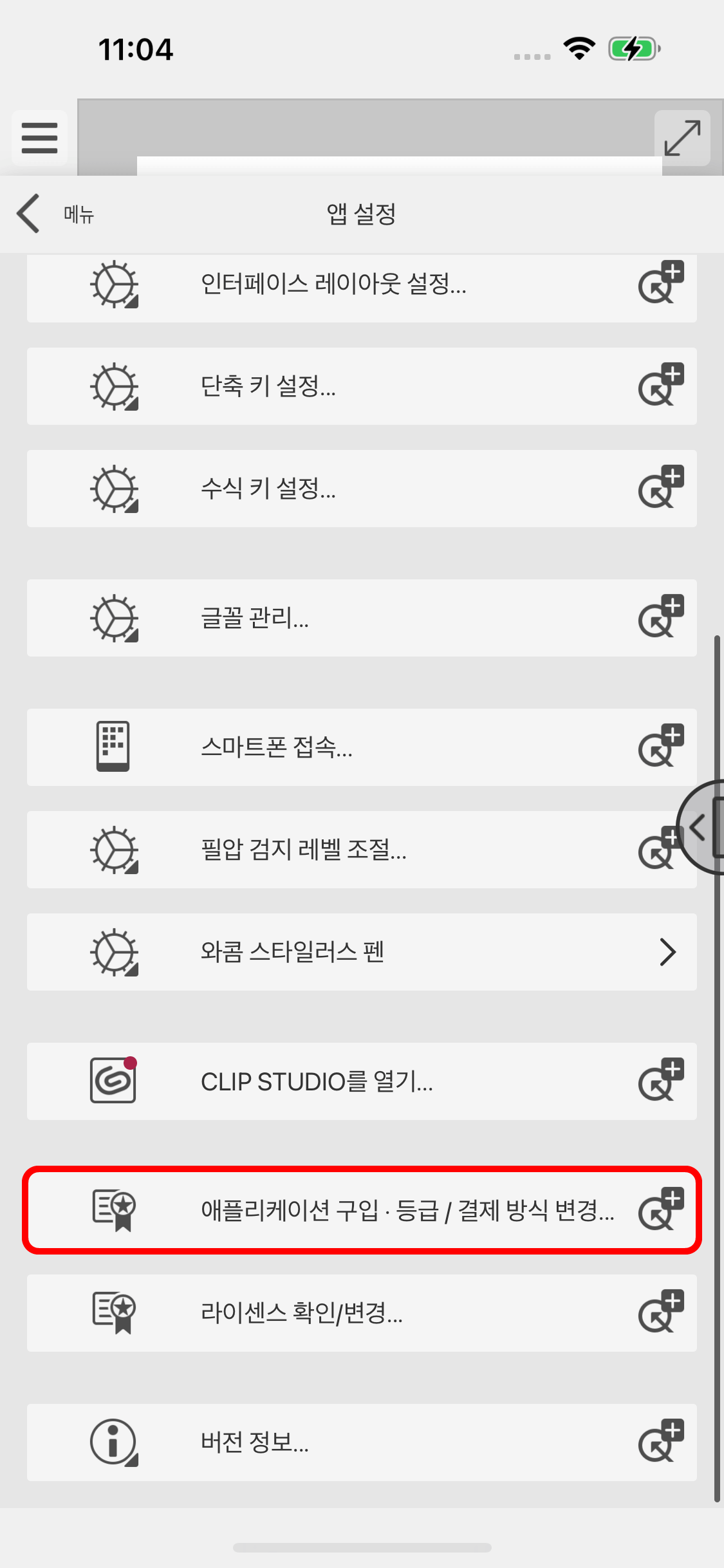 (5) [애플리케이션 구입 · 등급 / 결제 방식 변경]을 누름