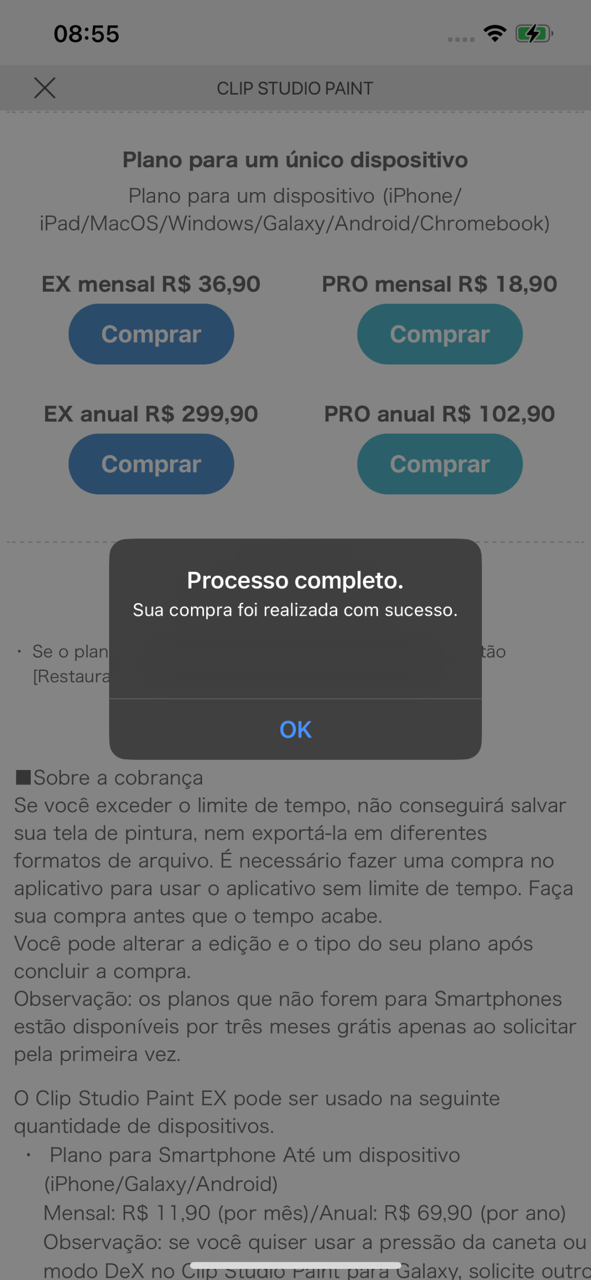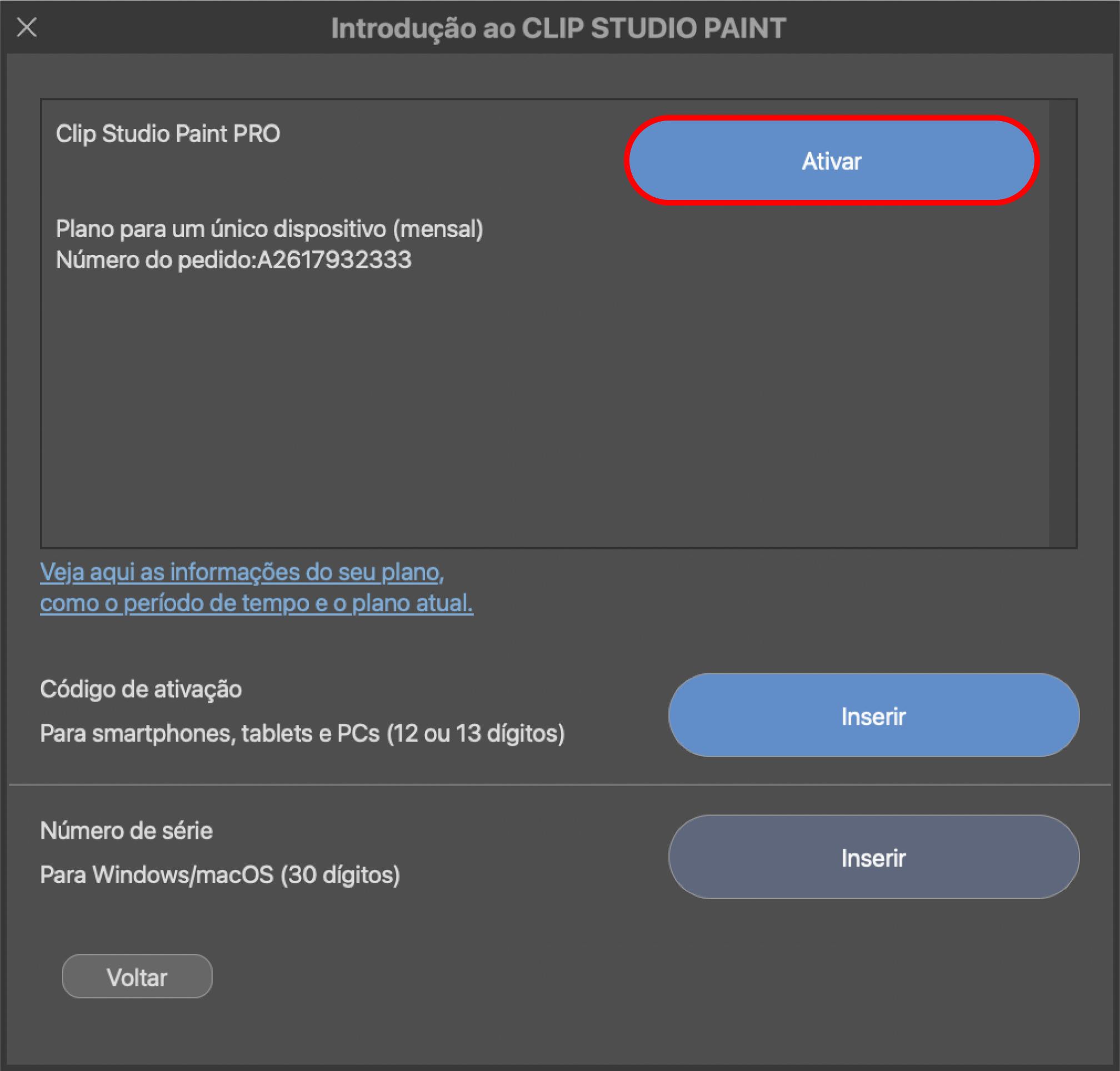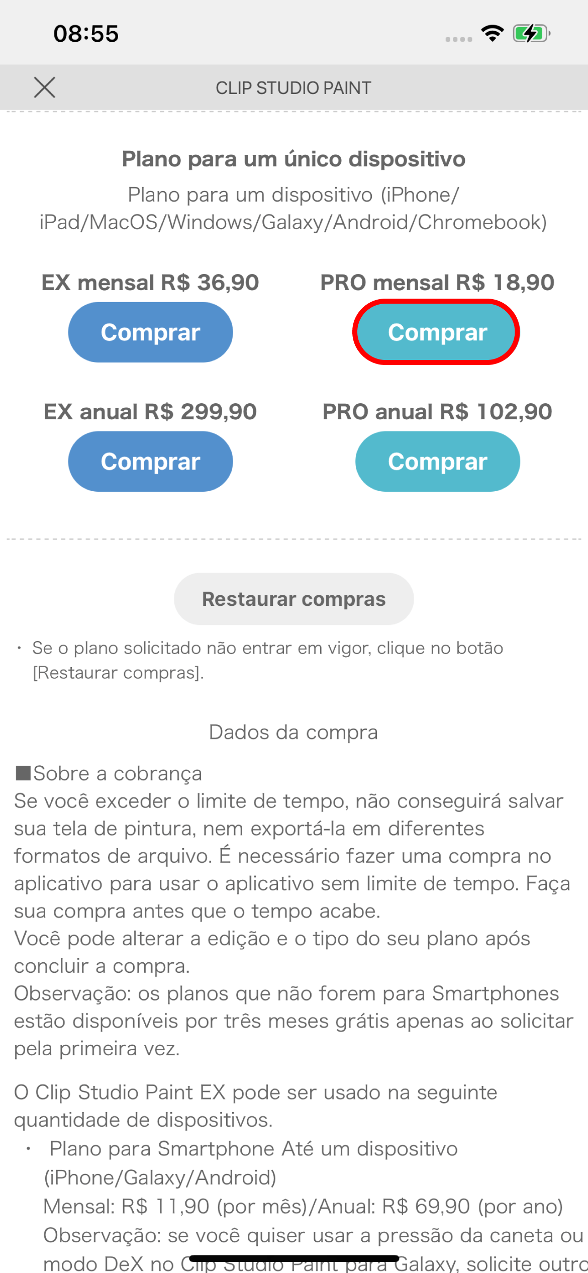 1. Mesmo se você quiser usar o Clip Studio Paint no seu computador, é possível se inscrever em um plano pela App Store ou pelo Google Play com seu smartphone ou tablet.