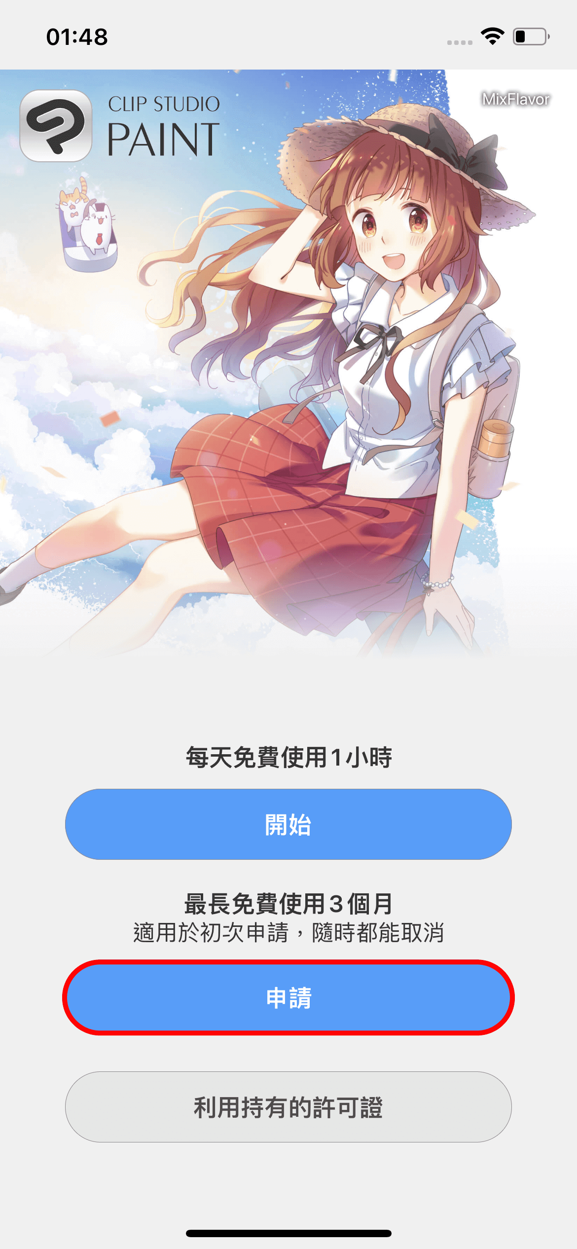3. 完成應用程式商店上的契約後,請以利用的電腦啟動CLIP STUDIO PAINT。若尚未安裝CLIP STUDIO PAINT,請由以下的按鈕進行下載以及安裝,完成後啟動程式。