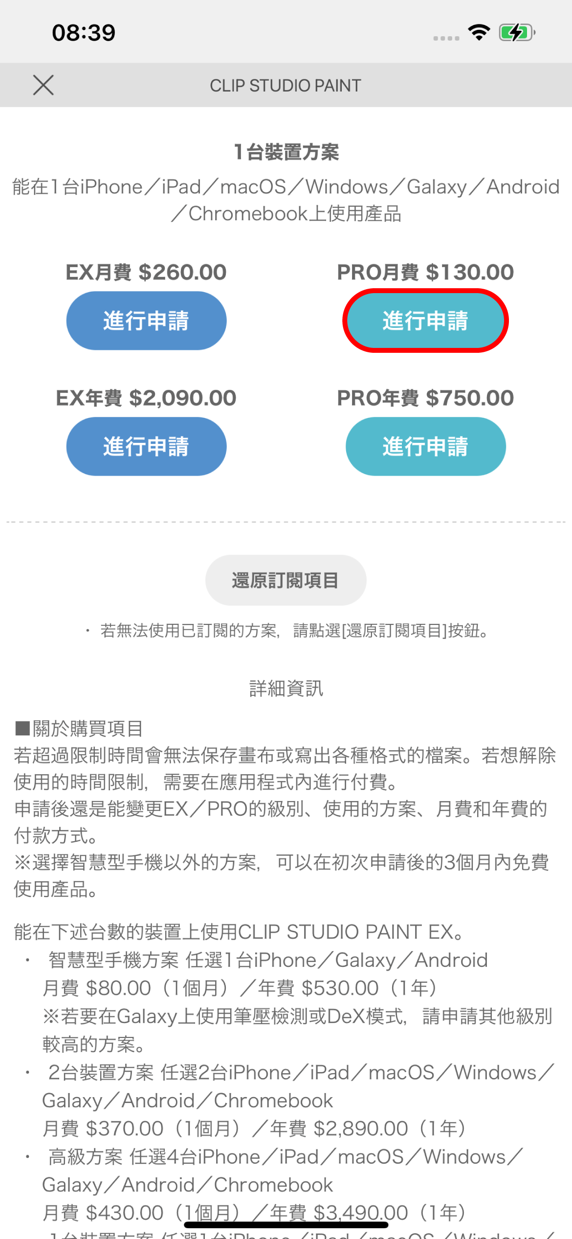 若已經開始使用任意一種月費方案,透過應用程式變更利用方案的步驟會發生變化,詳情請瀏覽此處。