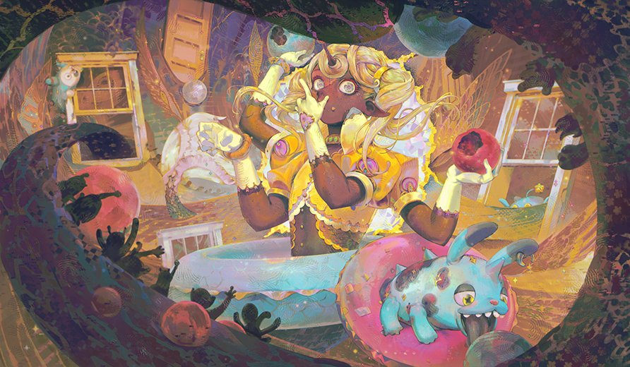Hyakkoさんの作品は、すぐに私の目に留まりました。数多くのレベルの高い作品の中でもとても際立ってユニークで、「かわいさ」を具現化できている、と感じました。さらに、かわいいだけでなく、見るたびに新しい発見がありました。特に作品全体に散らばっている小さなキャラクターの小さな顔が大好きですが、主役の星座リボンなど、デザインも魅力的です。