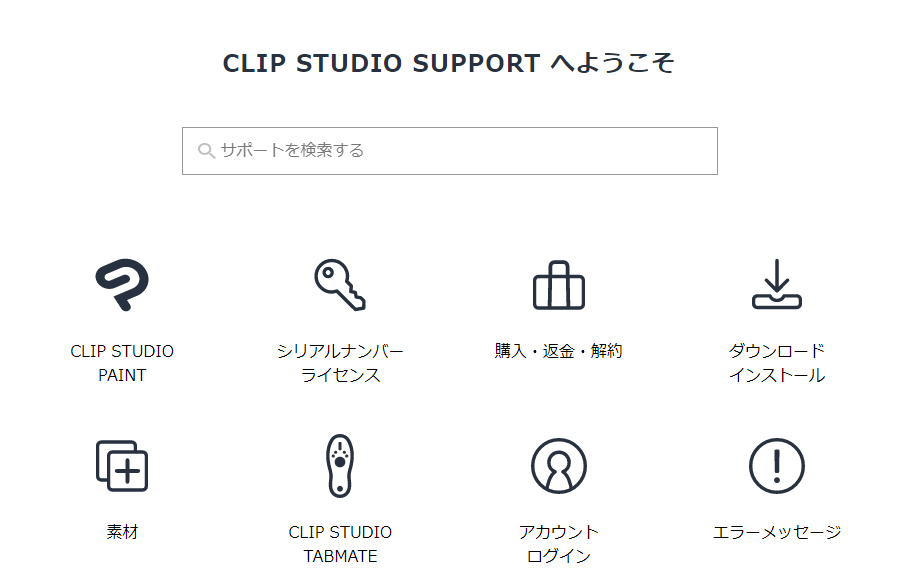 CLIP STUDIO SUPPORTは、CLIP STUDIO PAINTやシリアルナンバーなどのよくある質問や悩みへすぐにアクセスできるクイックリンクをご用意しました。