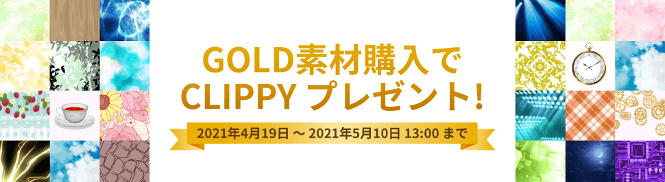 日頃の感謝を込めて、4月19日(月)よりGOLD素材を購入で同じ数のCLIPPYがプレゼントされるキャンペーンを開催いたします。