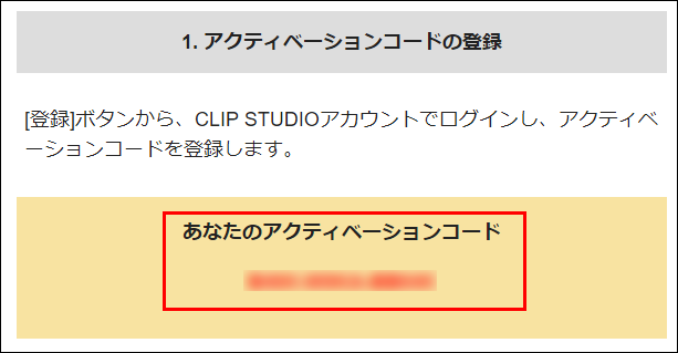 1. CLIP STUDIOストアでご購入時に入力したメールアドレス宛にアクティベーションコードが届きます。