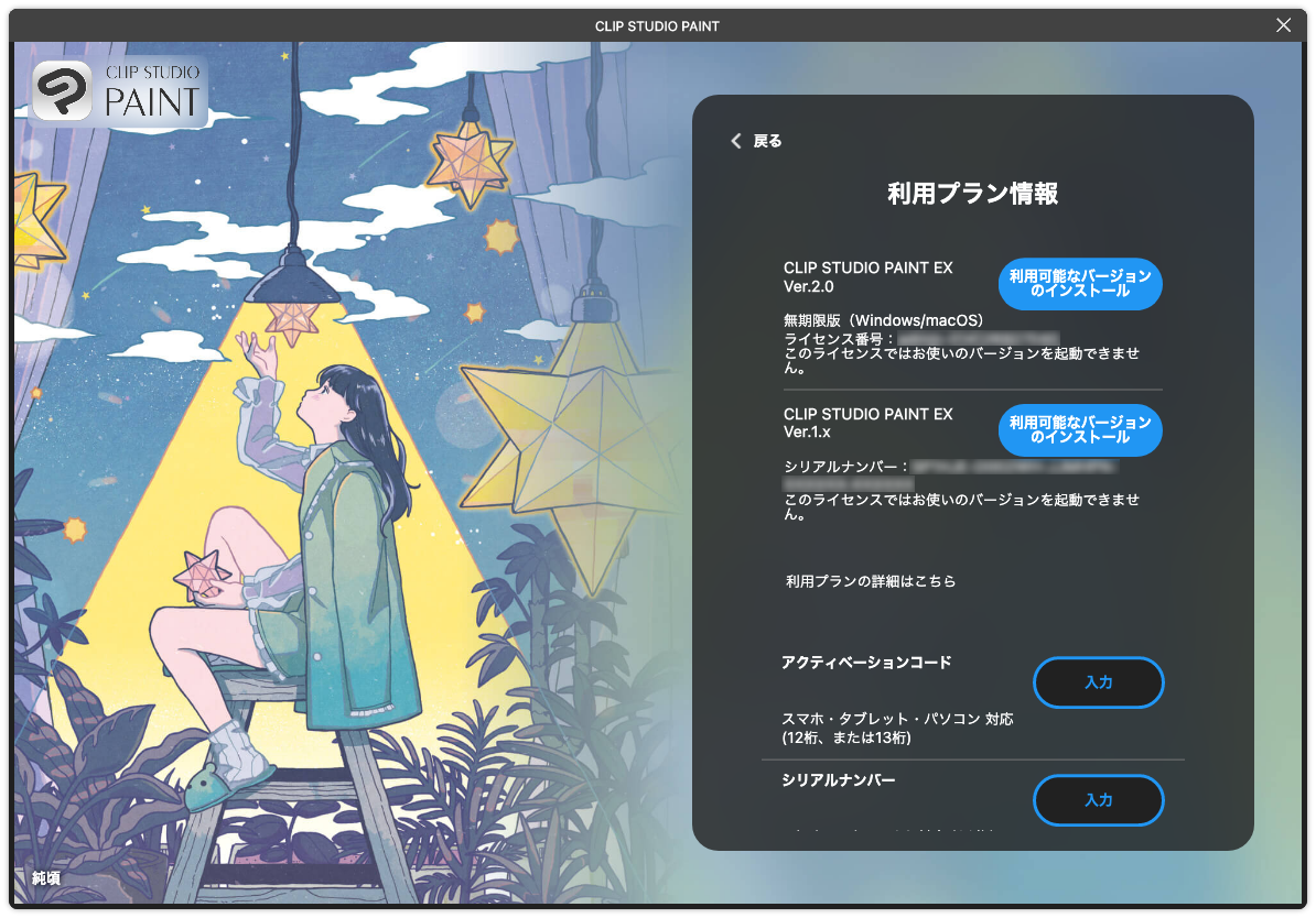 最新バージョンのダウンロード - 2. CLIP STUDIO PAINTを起動後、最新バージョンのEXに切り替え