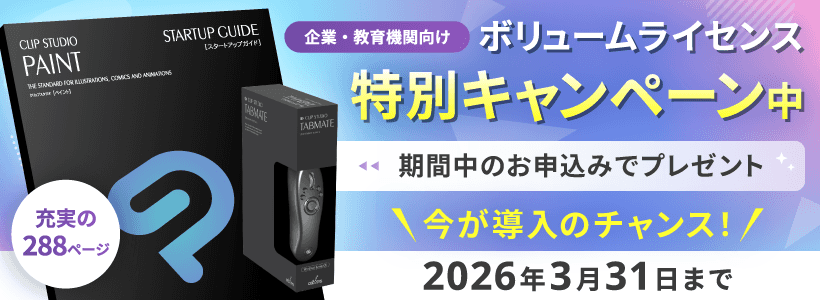 【法人・教育機関様へ】在宅・リモート環境を強力にサポート!CLIP STUDIO PAINT EX/PRO ボリュームライセンス 期間限定プレゼントキャンペーンを実施中(3/31まで)