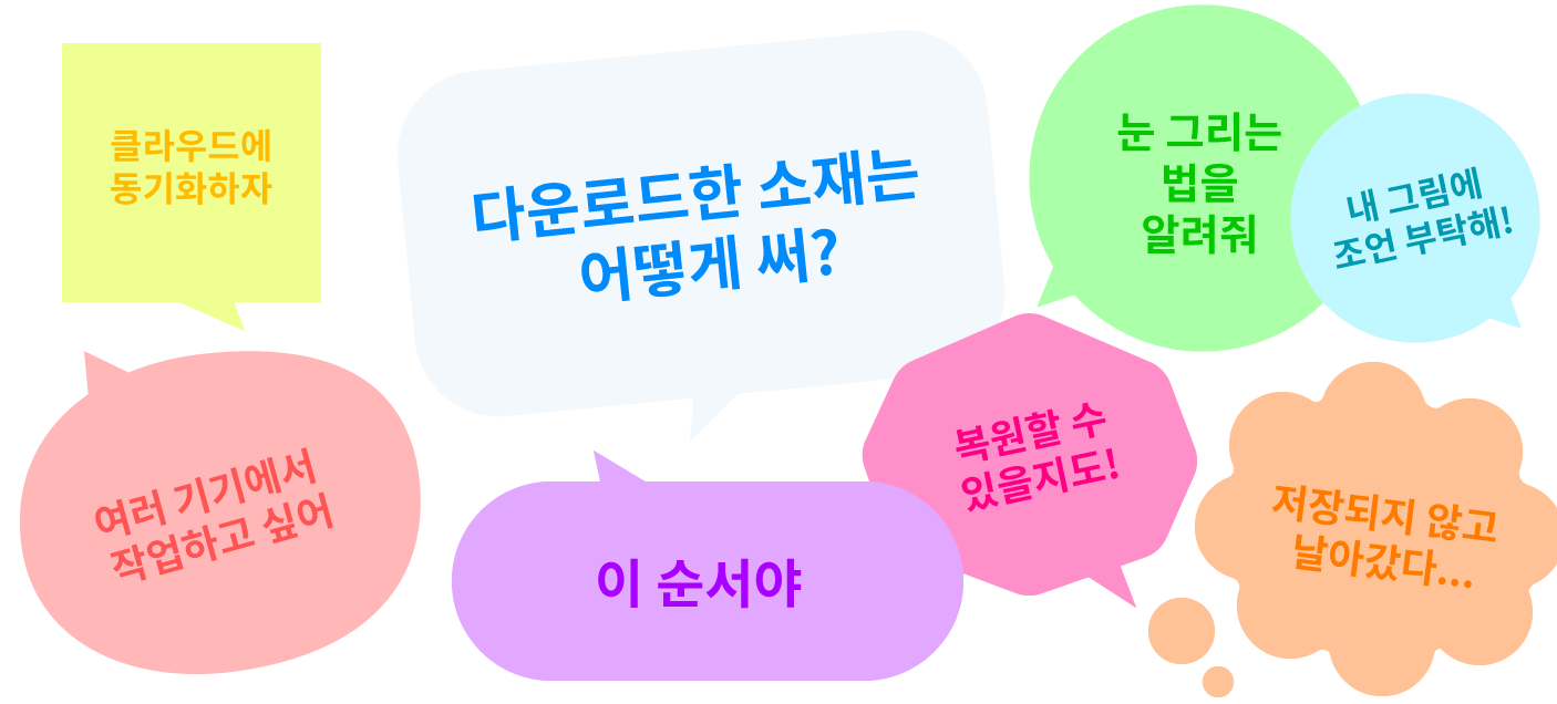 - 일러스트를 보기 좋게 꾸미고 싶을 때, 잘 그릴 자신이 없을 때 등 다양하게 활용
