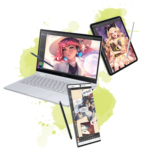 전 세계 5,000만 명 이상 이용*. 전문가들이 애용하는 일러스트, 만화, 애니메이션 제작용 인기 앱 CLIP STUDIO PAINT. 선택한 기기(iPad / Android / Windows / macOS/ iPhone)에서 필요할 때에만 부담없이 사용할 수 있습니다.
