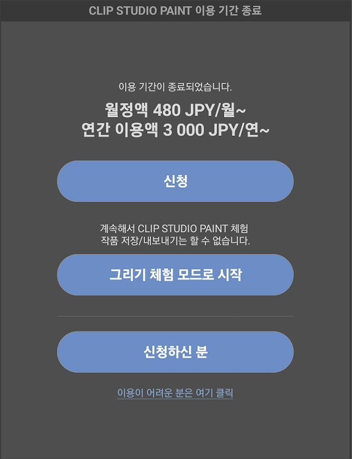 - CLIP STUDIO PAINT PRO(연간 이용액/월정액 플랜)를 계약 중이신 분