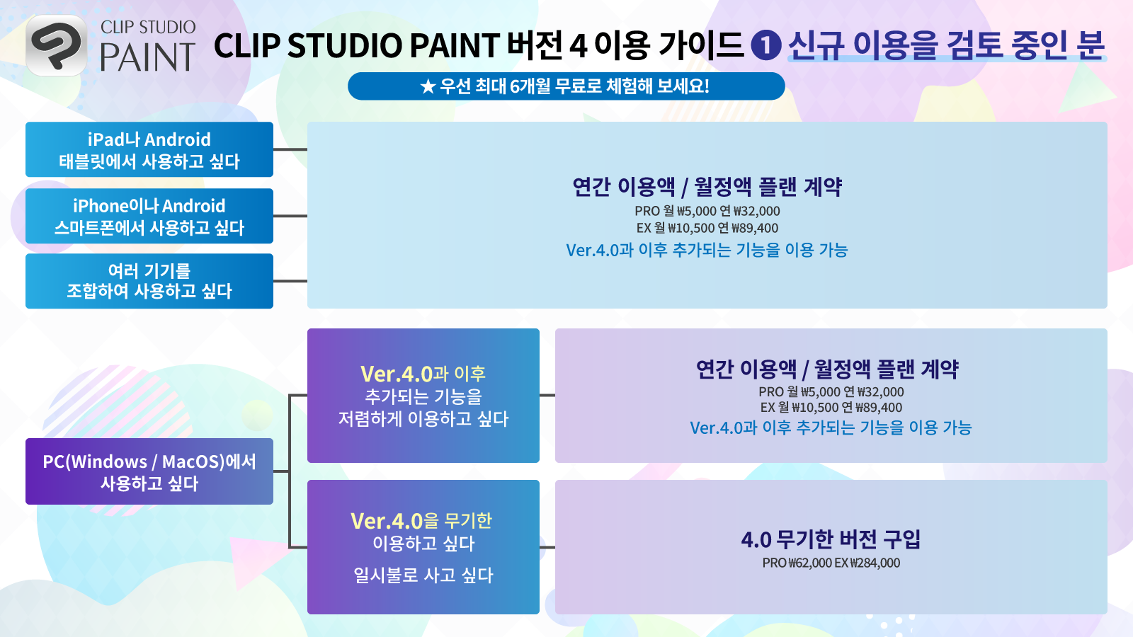 CLIP STUDIO PAINT의 이용 현황에 따라 Ver.4.0 이용 방법이 다릅니다.