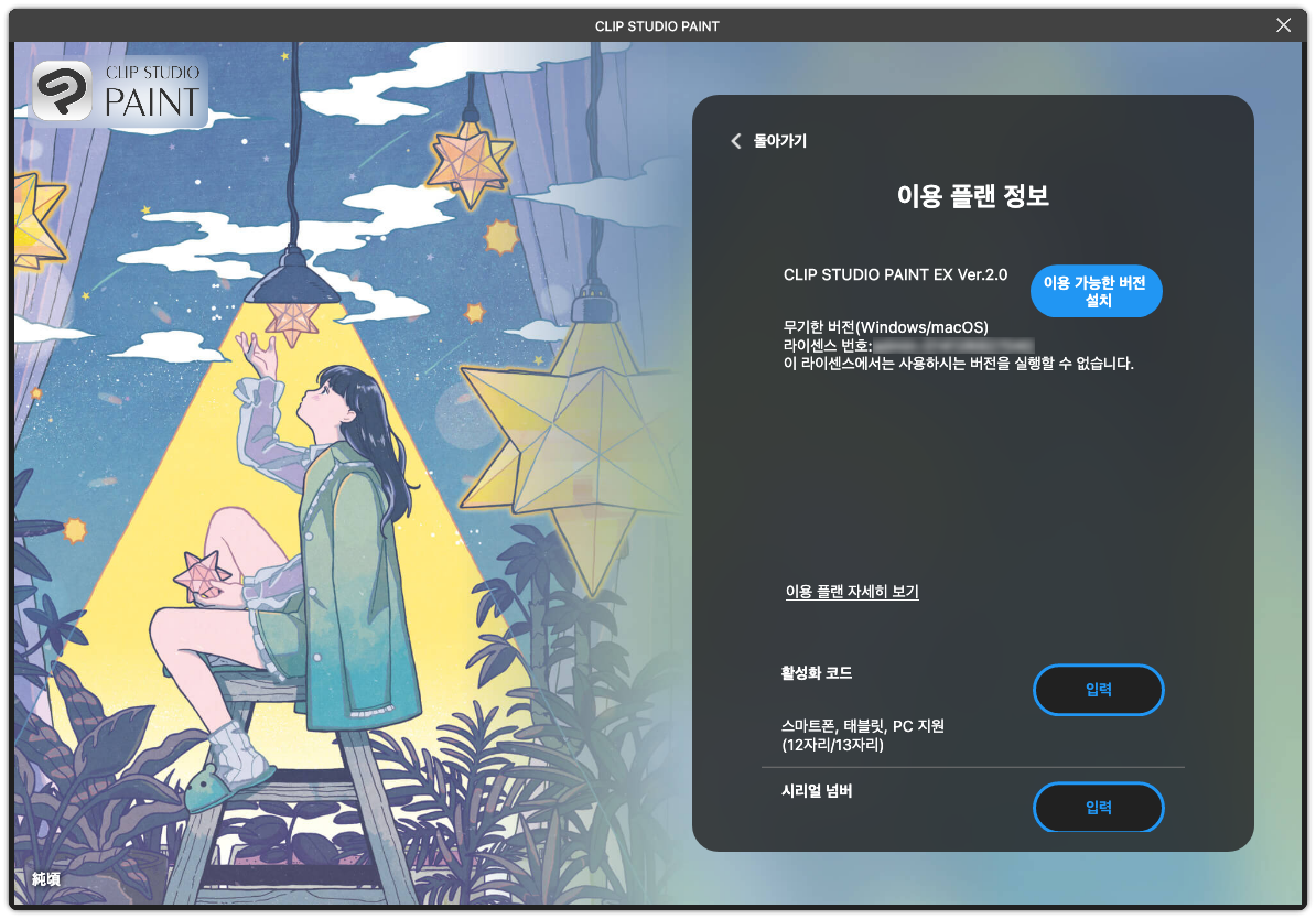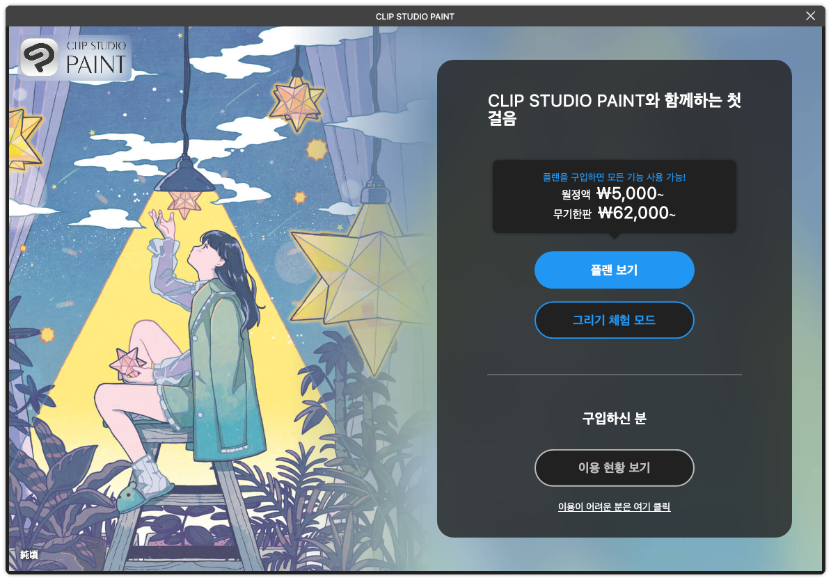 최신 버전 다운로드 - 2. CLIP STUDIO PAINT를 시작 후 최신 버전 EX로 전환