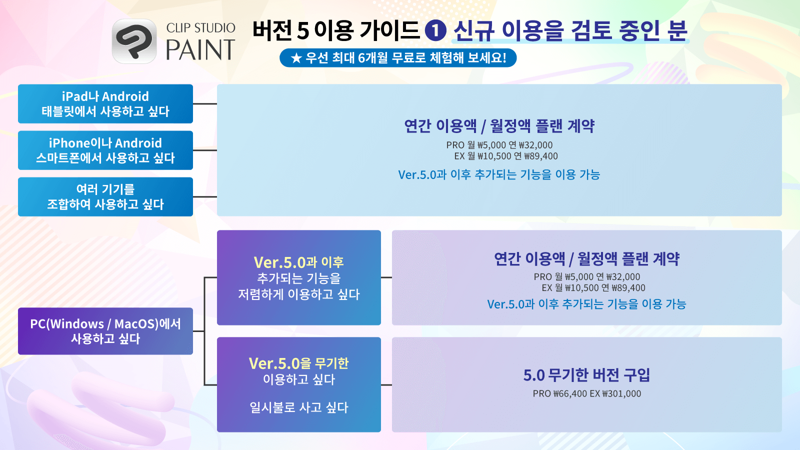 CLIP STUDIO PAINT의 이용 현황에 따라 Ver.5.0 이용 방법이 다릅니다.