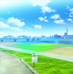 空の色がオレンジ色になり、夕暮れの景色になりました。