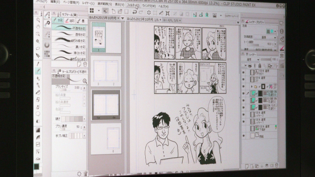 内田春菊先生に「本当にあった笑える話」(ぶんか社)10月号掲載の『私たちは繁殖している』の1ページを描いていただきました。前編では、全体的な作画の流れと1コマ目完成までの作画工程を見ていきましたが、後編では、2コマ目から完成までの作画工程を確認していきます。