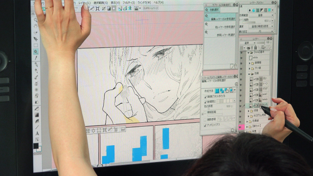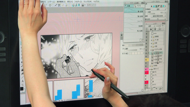 筆で描く様にトーンを削る感覚や何度も繰り返しやり直しを行い試行錯誤できるのはデジタルならではです。