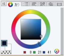 B 色は彩度と明度のバランスで細かい差が変わって見えるので、カラーパレットできちんと確認しながら選択する。