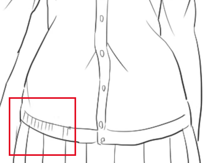 セーラー服の長さは普通、腰あたりまでになりますが少し短めに描くことで脚をより長く見せることができます。