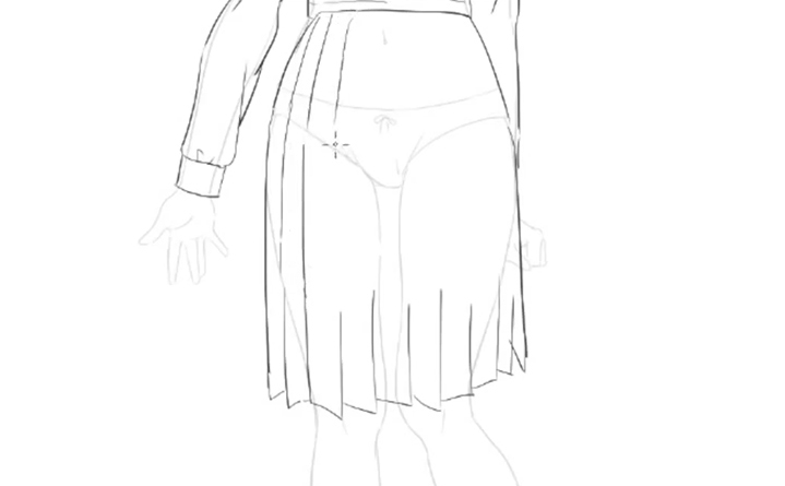 次にセーラー服に合わせて少し長めのスカートを描いていきます。腰に沿って外側のラインを描きスカートの長さを決め、単調にならないよう気をつけながら裾を描いていきます。