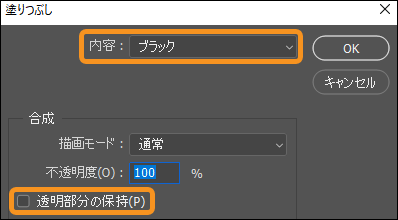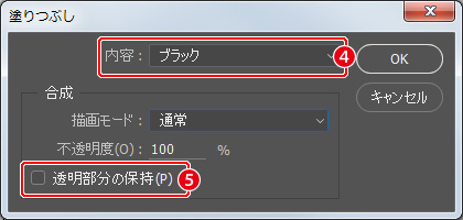 (5)[透明部分の保持]のチェックをオフにして、[OK]をクリックします。