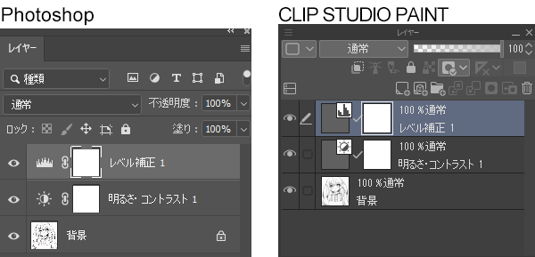 [レイヤー]メニュー→[新規色調補正レイヤー]→[レベル補正]