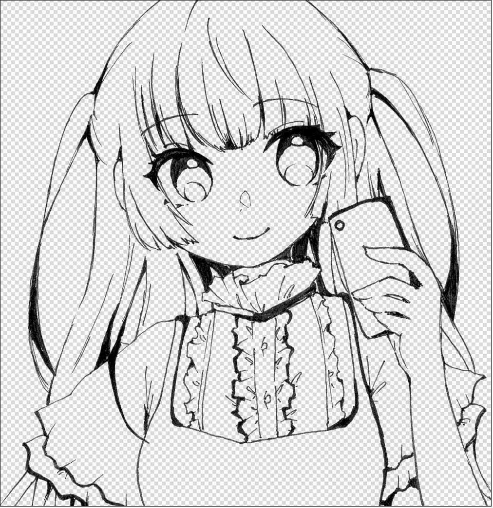 線画抽出されたイラストは、線画以外が透過されています。