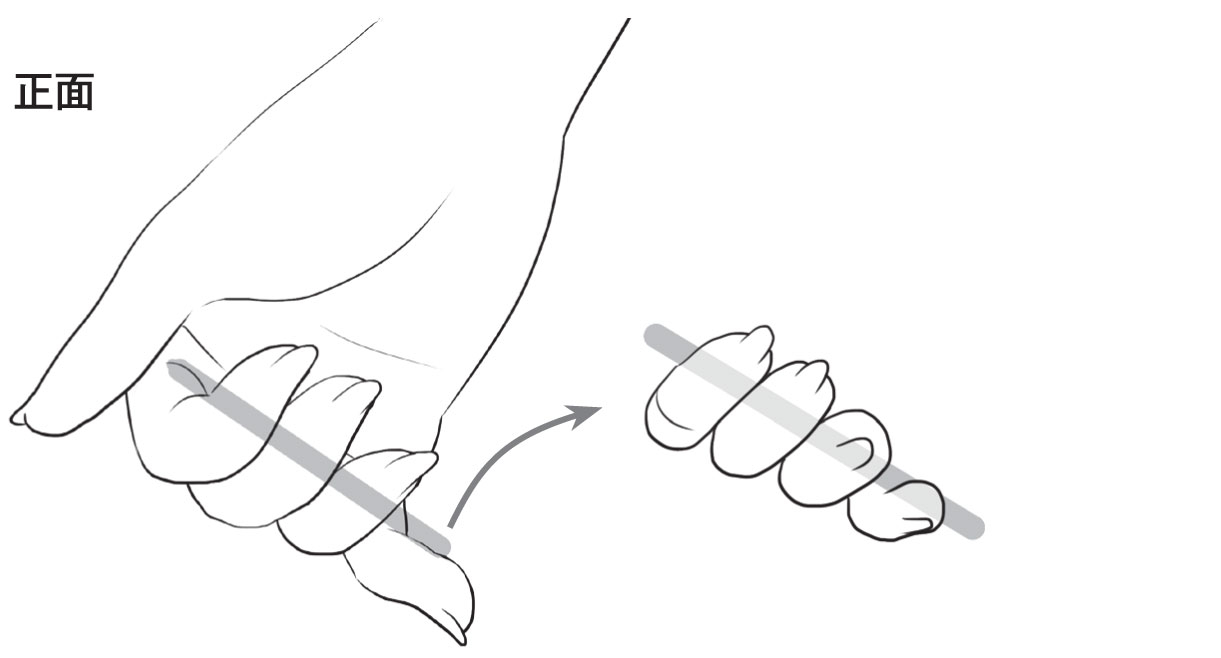 指をかける(男子の手の) スペースが 一直線なため、小指まで順に開いている