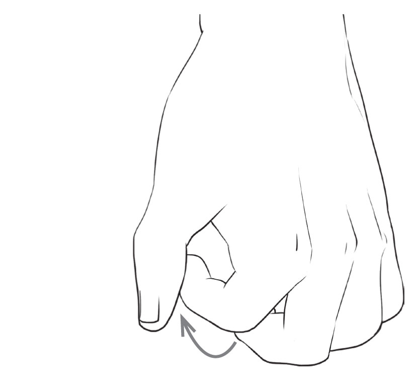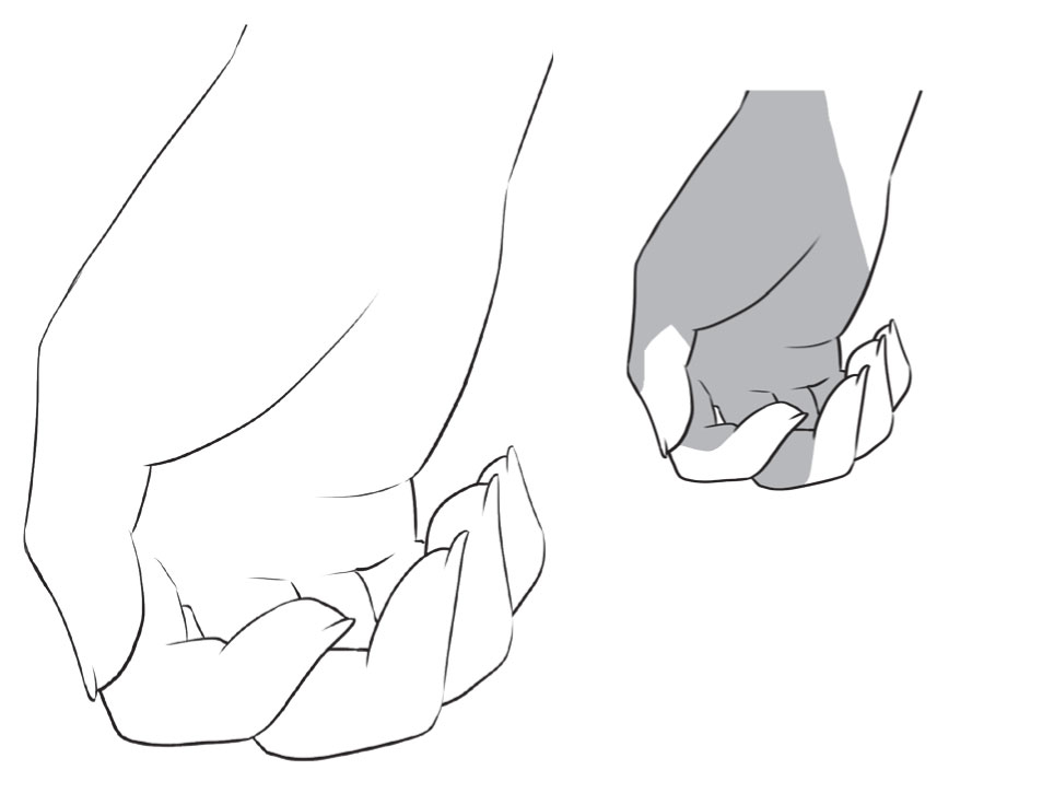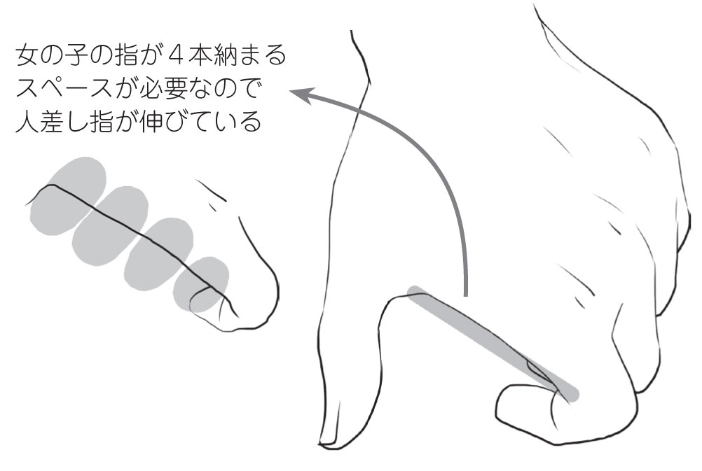 後ろにある手は形を正確に把握していないと、手前に 見える指先の出どころがおかしくなる