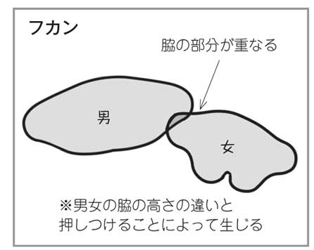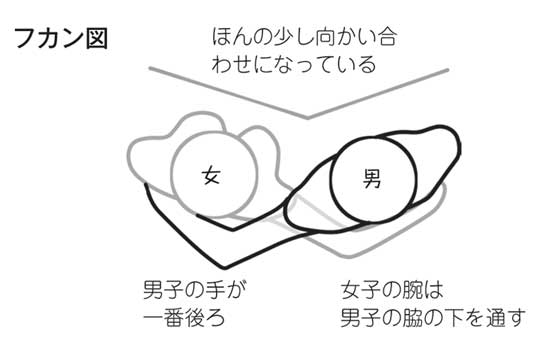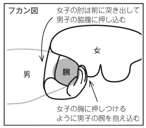 女子の肘を男子の脇に押し込み、胸を押しつけ、