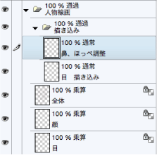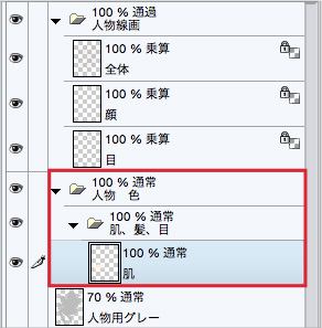 さまざまな箇所の最終調整をこのフォルダー内で行っていくため、この中に作成したレイヤーには、[下のレイヤーでクリッピング]は適用しないことに注意してください。