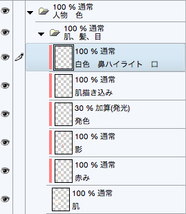 最後にハイライト用のレイヤーと、肌の色味調整用のレイヤーを追加して、それぞれ仕上げていきます。