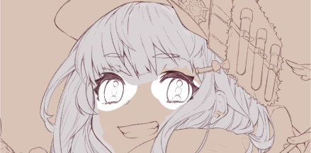 さらに目元に合わせ、口元や眉毛などの線画も柔らかい印象の赤ワイン色に変更しています。