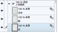 [人物線画]フォルダー内の目のレイヤーを選択し、[透明ピクセルをロック]をオンにします。