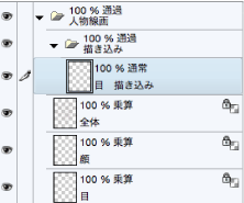 目だけでなく、衣装や顔などで描き込みをしたいときにもこの[描き込み]フォルダーのなかにレイヤーを追加して描き込んでいくようにします。