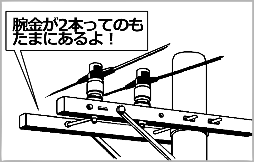 この部分は落雷対策に電線とはまた別の「架空地線」がつながっていることも多い。