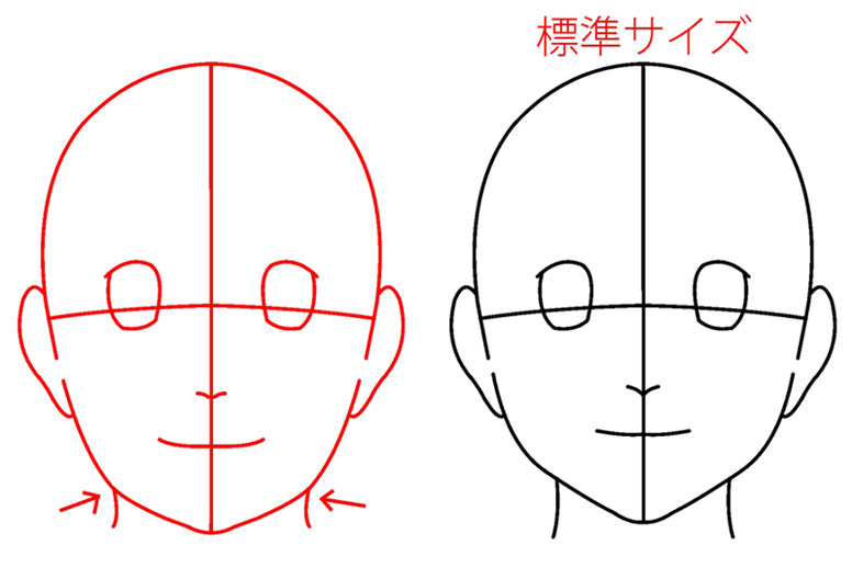 逆に「かわいらしさ」を出したいときは頬を丸く描くという手法もあるわけです。