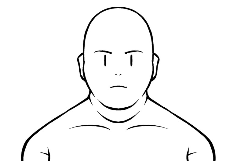 比較的頭皮にはお肉はつきにくいので、頭部の下半分中心にお肉を付けていくようなイメージで描いてみましょう。