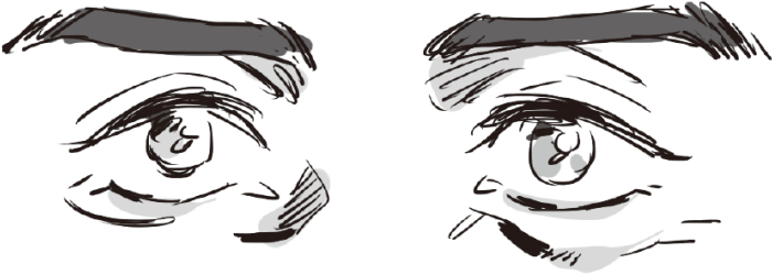 大人びていて、落ち着いた性格のキャラクターが笑うときによく見られる目です。