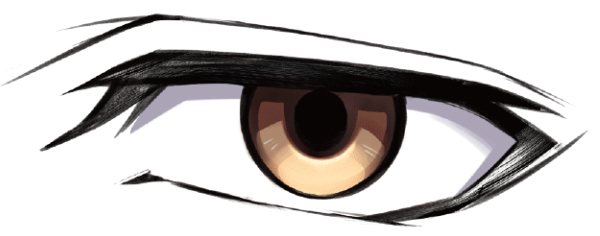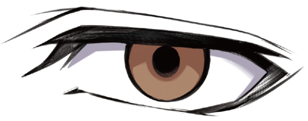 クールなイケメンキャラクターや冷静な性格のキャラクターによく見られる目の形です。