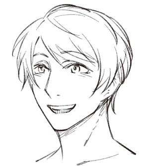 口の動きは、口角が上がる、歯を食いしばる、唇を固く結ぶ、下唇に力が入るなどが挙げられます。上下の唇の形と歯の見せ方が重要になります。下唇の下端を線で描き加えると唇の立体感が増します。