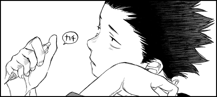 将也の「シャーペン」です。限られたページ数で、将也の感じている「退屈」を表現するために使いました。