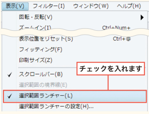 その場合は、[表示]メニュー→[選択範囲ランチャー]を選んでチェックを入れます。