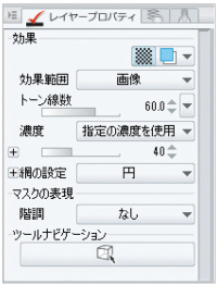 また、トーンを貼り付けた後でも、[レイヤープロパティ]パレットで設定の変更が可能です。